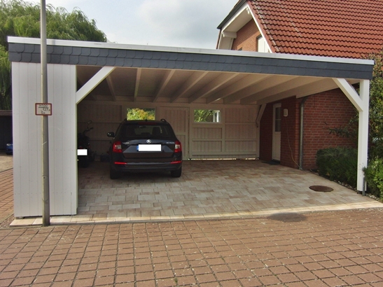 Galerie mit Fotos und Impressionen von Carports & Garagen aus Holz von Grupe Zimmerei & Holzbau.